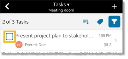 When you complete your task, you can check it off. Only the task creator, the assignee of a task, of a workspace administrator can check off a task as complete.