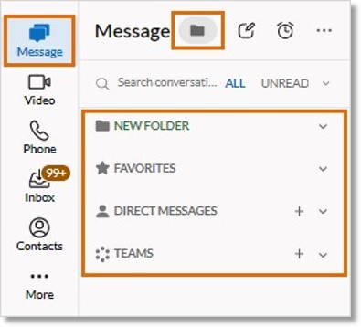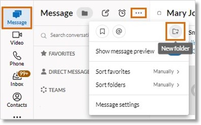 - When folder view is on, your messages are organized by default into Favorites, Direct messages, and Teams.